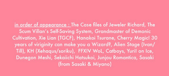 The biggest tags are The Case files of Jeweler Richard (4 page comic), SVSSS (5pgs) , Cherry Magic (4pgs) , Alien Stage (2 pgs), and Catboys (3pgs).